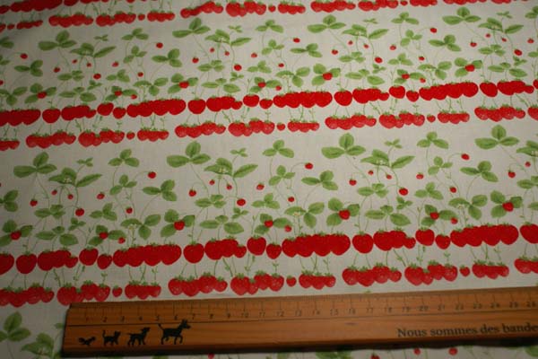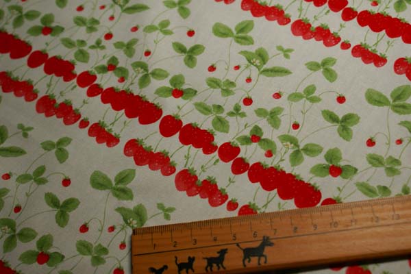 たわわに実った苺が美味しそう〜(*^^*) 約12pのボーダー柄のブロード地です。 お子さんのワンピースや流行の3段スカートにもかわいいですよ♪