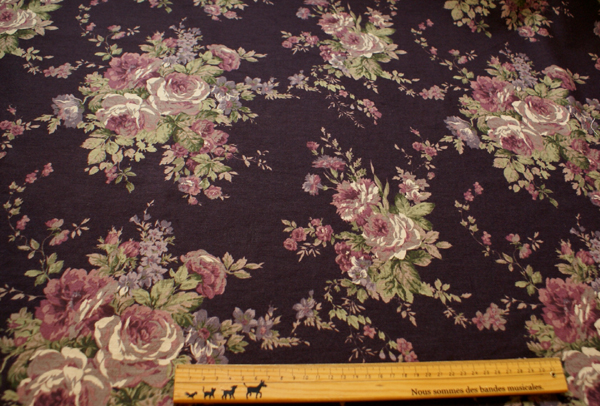 アンティーク調の大人っぽいプリントが素敵なリングスラブです。 エアータンブラー加工されており、中厚程度の厚みがありますが 柔らかでしっとりした良い風合いです。 大柄ですが、ウェアーや布雑貨にインテリア等いろいろ作っていただけます。