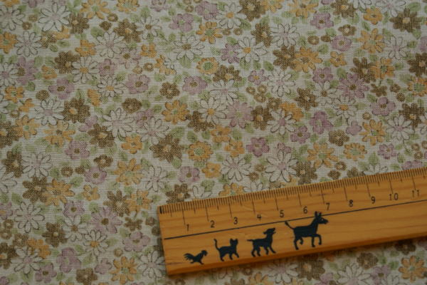色鉛筆画の様な、少しかすれたような色合いのプリントです。 ブロード程度の厚みで、扱いやすくお値段もかわいいので バッグやポーチの裏生地にもおすすめです(*^^*) ワンピースやチュニック等のお洋服にもかわいいですよ♪