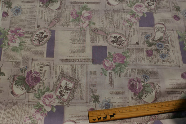 アンティーク感漂う、おしゃれで素敵なシャーティング生地がYUWAさんから登場です。 エレガントなローズやアンティーク調の手鏡、英字のカードが アンティーク感をより一層引き立てています。 パッチワークや裏布にはもちろん、クッションカバーや目隠しカーテンにも素敵です。 アンティーク感溢れる、素敵な作品になりますよ♪