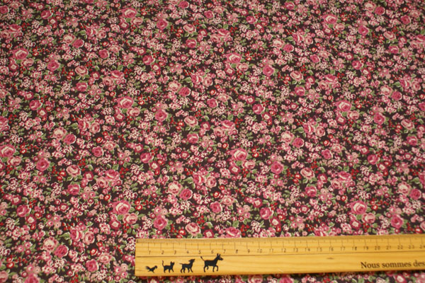 ブラウンの地色にピンクの薔薇が映えて かわいくて素敵なプリントです。 大人っぽくもあり、お子さんのお洋服にもかわいいですね。 リネンとの相性も良く、ウェアーや布小物等幅広く使えます。 バイヤステープにもピッタリですし、見返しに使ってもにも素敵です。