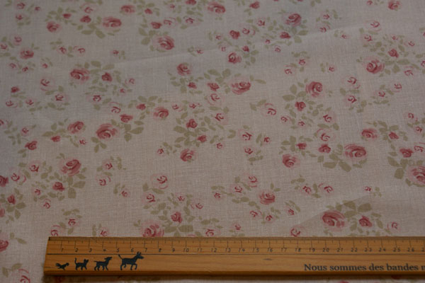 水彩画タッチのプリントにガーゼのような上質のボイル生地、ひとめ惚れでした〜(*^^*) 透け感はありますが、春夏のブラウスやチュニック等のウェアーにもピッタリです。 暖簾やカフェカーテンにも素敵ですよ♪