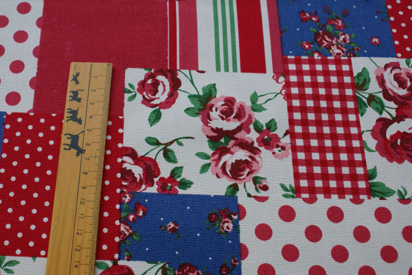 大人気シリーズ、「English garden」のよりKindlyが入荷しました♪ ドットにストライプや花柄が上手くミックスされた素敵なパッチワーク柄です。 生地は厚手でしっかりした10番オックスです。 ソフト加工されていますので、しっかりしていながら 柔らかな風合いもある素敵な生地です。 しっかりした生地ですので、バッグやポーチ等にお勧めです。 エプロンやクッションカバー等のインテリアにも良いですね♪