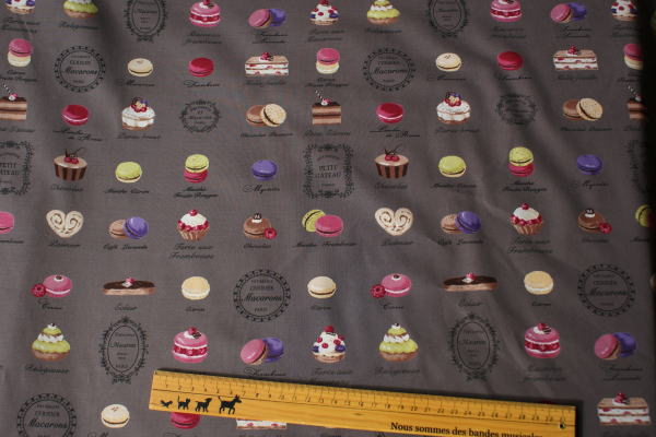 カラフルでおいしそうなスウィーツがいっぱいのキュートな生地です。 スィーツ柄の発色もきれいで、気品さも感じられます。 バッグやポーチの布雑貨にかわいいですね(*^^*) カーテンにしても素敵♪