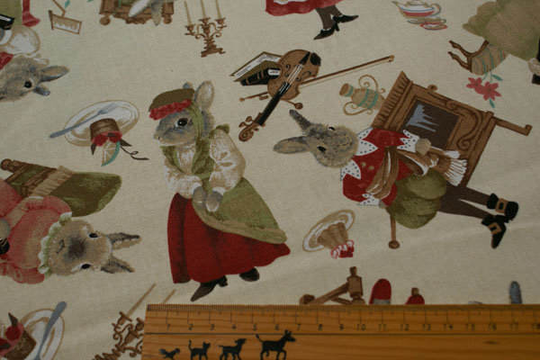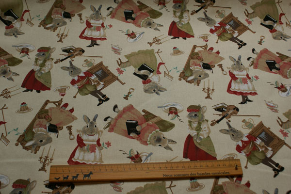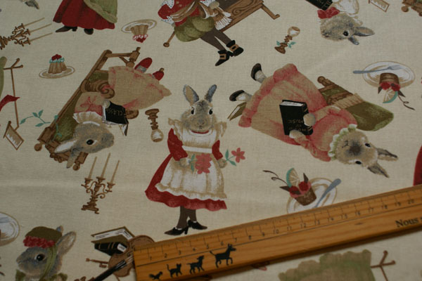 不思議の国のアリスに出てくるようなうさぎ達がプリントされた シーチング生地です。 うさぎフェチ?なかたならきっと気に入ってくれるはず!(笑)