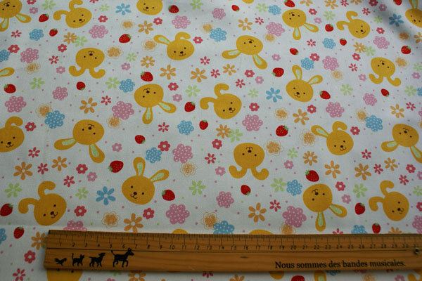 ラブリーなうさぎさんにお花とフルーツがプリントされたオックス生地が仲間入り♪ 厚すぎず、薄すぎず程よい厚みのオックス生地ですので バッグや巾着等の袋物にピッタリ! 入園入学準備にもお勧めです(*^^*)