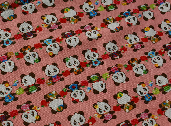 かわいいパンダちゃんが仲良く手をつないでます〜(〃▽〃)ポッ 眺めているだけでhappyな気持ちになれますね♪ 生地は厚手のしっかりした10番オックスなので バッグやポーチ等の布雑貨にピッタリです。 お子さんの入園入学グッズにもかわいいですね!