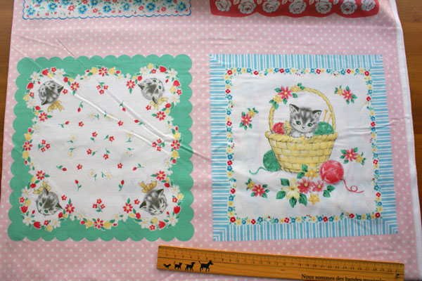 ねこちゃん好きにはたまらないプリント生地が仲間入り♪ 外国の絵本に出てきそうな優しい雰囲気のねこちゃんが とってもキュートで癒されます〜。 生地はシーチングなので、キルト綿や芯地を貼ってバッグにしたり お子さんのワンピやスカート等のお洋服やエプロンにもかわいいですね♪ 四角いパッチ柄は1枚が約24×24.5cmの8種類。 柄を切り取ってハンカチにしたり、キルト綿を挟んで ベビーキルトもかわいいですね♪