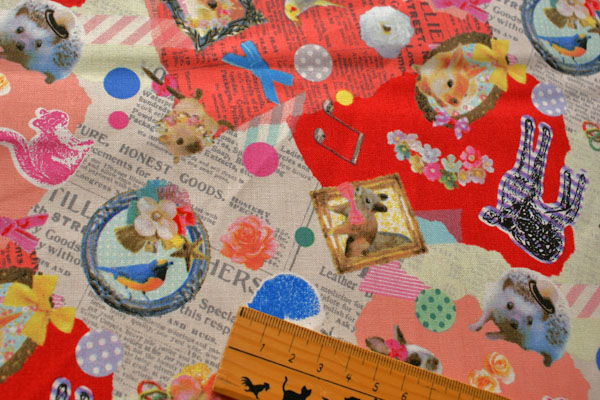 大好きなうさちゃんにハリネズミ、シカ等 かわいいモチーフがコラージュされた生地です。 眺めているだけで、テンションが上がってきますね〜♪ 生地は扱いやすい、シーチング生地です。 お子さんのスモック、体操服入れやコップ入れ等の入園入学グッズにピッタリです。 芯地を貼ってバッグにもかわいいですね。