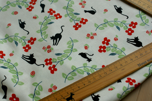 どこか懐かしいにおいのする生地です。 シャドウ風にプリントされた猫ちゃんがまた良い感じ♪ 和調にも使えそうですね!