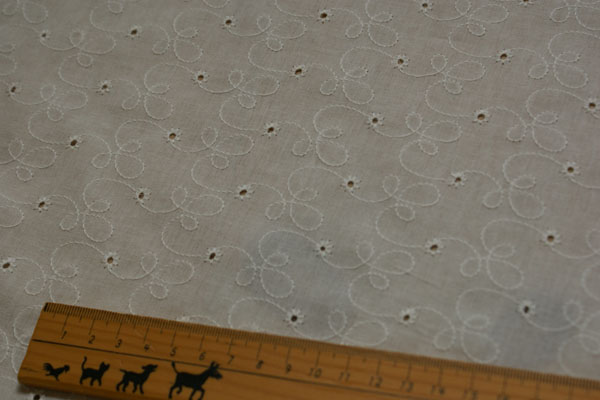UVカット加工された、とてもお値打ちな綿レースです。 ブラウスやチュニック等、この夏大活躍間違いなしですよ♪ 薄手で透け感があります。