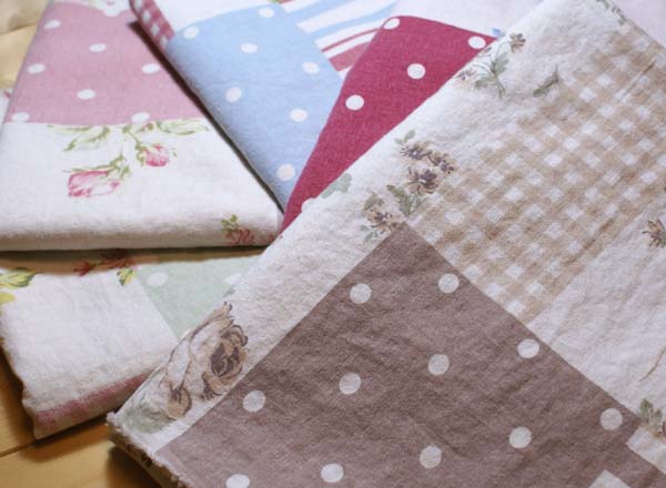 2007年6月展示会の綿麻スラブの新柄です。 ローズ柄をメインに、チェック、ドット、ストライプのパッチワーク柄になっています。 柄が大きめなので、カバー類に使うと、柄が活かされて、素敵です。 ひとつひとつの柄も切り離して、いろいろ使えそうですね(*^^*)
