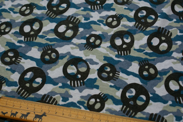 迷彩柄にドクロがプリントされたスームースニットです。 わんこ服やTシャツ等にどうぞ♪
