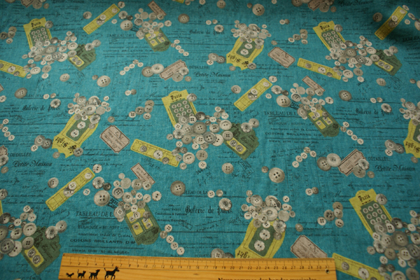 英字にアンティークボタンカードやボタン等がプリントされていて ソーイング好きにはたまらないですね♪ プリントが可愛いので、柄を生かして 大きめトートバッグや斜め掛けバッグなんかもかわいいかな〜