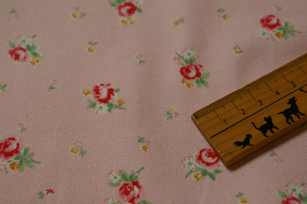 少し厚手のオックス地にローズとミニフラワーが 可憐に舞っています〜。 バッグやクッション等のカバーリングはもちろん、 ちょっぴり厚手だけど、生地は柔らかいので お子さんのお洋服にもぴったり! お値段も、セール価格で可愛くなってますよ♪