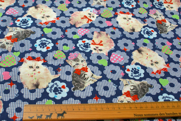 かわいくてキュートなネコちゃんが転写プリントされた ラブリーな生地です。 バッグやクッション、カーテン等のカバーリングや お子さんのワンピやスカートにもかわいいですね♪ セール価格なので、惜しみなく使えますよ〜(*^^*)